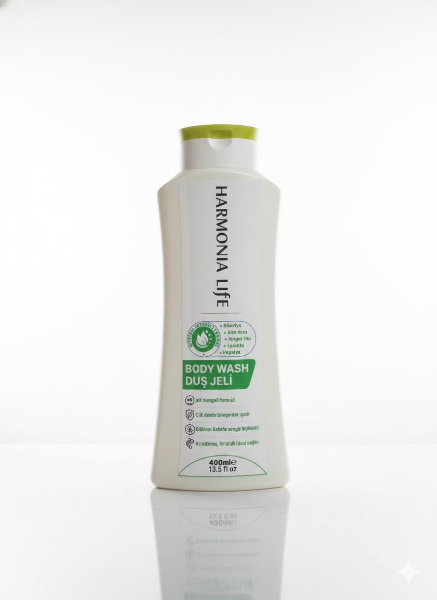 "Body Wash Duş Jeli ile banyo keyfinizi canlandırın! Cildinize nazikçe dokunan özel formülü ve zengin köpüğü sayesinde günlük duş rutininizi keyifli bir deneyime dönüştürür. İçeriğindeki özel bitkisel notalar (Biberiye, Aloe Vera, Tarhun Otu, Lavanta, Papatya) ile vücudunuzda hoş ve taze bir koku bırakırken, kendinizi yenilenmiş hissetmenizi sağlar. Duş sonrası cildinizde hafif ve temiz bir his bırakır. Güne zinde başlamak veya günün yorgunluğunu atmak için idealdir. Her duşta cildinize narin bir temizlik ve hoş bir koku deneyimi sunar."
